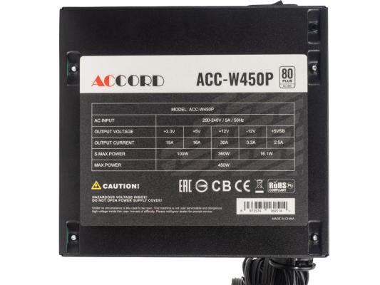 Блок питания ATX 450Вт Accord ACC-W450P 80 PLUS White (20+4pin) APFC 120mm fan 6xSATA [ACC-W450P]