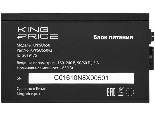 Блок питания ATX 650 Вт KingPrice KPPSU650 (20+4pin) APFC 120mm fan 4xSATA RTL