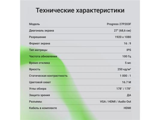 Монитор Digma 27" Progress 27P203F черный IPS LED 5ms 16:9 HDMI матовая 250cd 178гр/178гр 1920x1080 100Hz VGA FHD 5.8кг