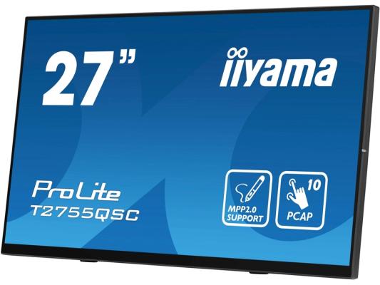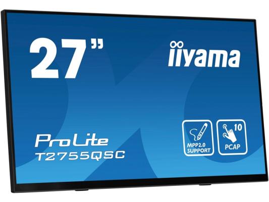 Монитор Iiyama 27" ProLite T2755QSC-B1 черный IPS LED 16:9 HDMI M/M глянцевая 400cd 178гр/178гр 2560x1440 75Hz DP WQ USB Touch 5.8кг
