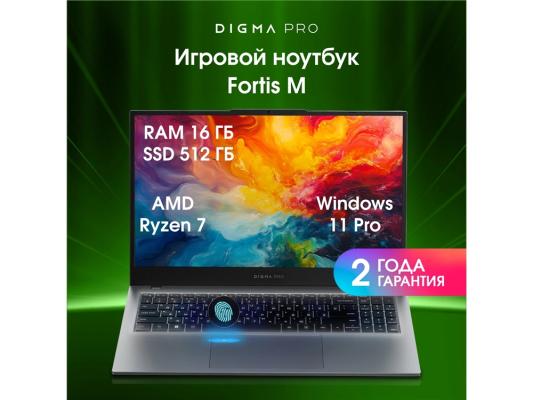 Ноутбук Digma Pro Fortis M Ryzen 7 5825U 16Gb SSD512Gb AMD Radeon Graphics 15.6" IPS FHD (1920x1080) Windows 11 Pro grey WiFi BT Cam 4250mAh (DN15R7-ADXW04)