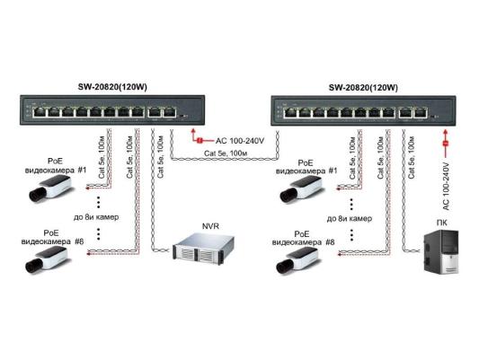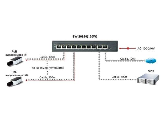 PoE коммутатор, 8 x FE с поддержкой PoE (IEEE 802.3af/at), 2 x GE, до 30W на порт, суммарно до 115W