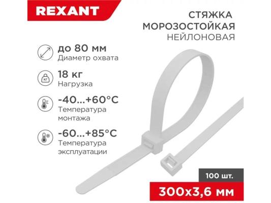 Стяжка Rexant 87-0300 300x3.6мм (упак:100шт) нейлон внешний (-60/+85) белый