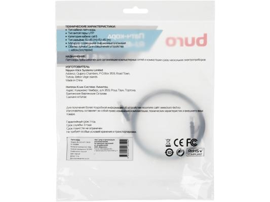Патч-корд Buro Flat литой (molded), UTP, кат.6, 1.5м, 4 пары, медь, многожильный, черный, плоский (flat)