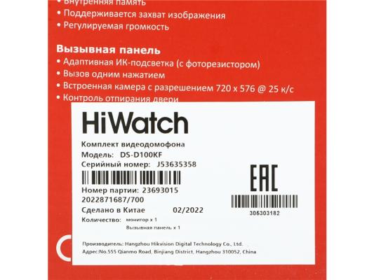 Видеодомофон Hikvision DS-D100KF белый