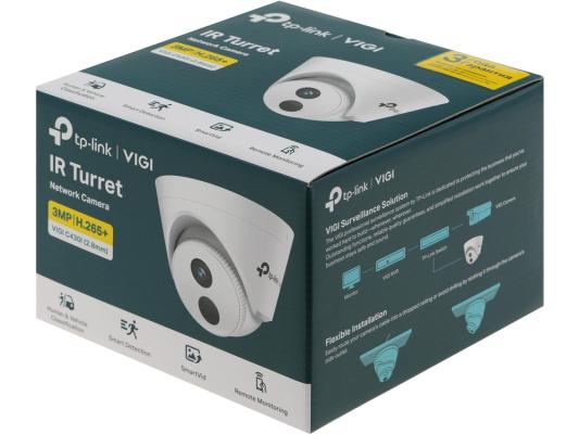 VIGI C430I(2.8MM) 3MP Turret Network CameraSPEC: H.265+/H.265/H.264+/H.264, 1/2.8"" Progressive Scan CMOS, Color/0.1 Lux@F2.0, 0 Lux with IR, 25fps/30fps (2304x1296,2048x1280, 1920x1080,1280x720), PoE/12V DC, 2.8 mm Fixed LensFEATURE: Smart Detection (Human &Vehicl