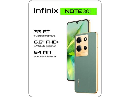 Смартфон Infinix X6716 Note 30i 128Gb 8Gb зеленый моноблок 3G 4G 2Sim 6.66" 1080x2400 Android 13 64Mpix 802.11 a/b/g/n/ac NFC GPS GSM900/1800 GSM1900 TouchSc FM microSD max1024Gb
