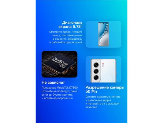 Смартфон Tecno Camon 40 Pro 5G 256Gb 12Gb белый ледяной моноблок 3G 4G 6.67" Android 14 50Mpix 802.11 a/b/g/n/ac NFC GPS GSM900/1800 GSM1900 Protect